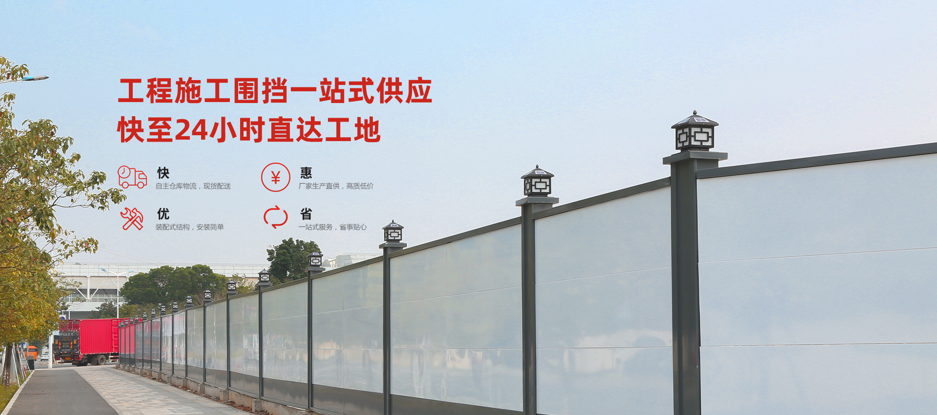 旭東施工圍擋,在建筑領(lǐng)域廣獲客戶好評,具有自主技術(shù)優(yōu)勢的裝配式圍擋A款、鋼結(jié)構(gòu)圍擋C款、PVC圍擋和定制圍擋等產(chǎn)品,廣泛應(yīng)用于房屋、路橋和地鐵等建設(shè)施工現(xiàn)場和項目部的周圍,是城市文明施工的一道安全屏障。